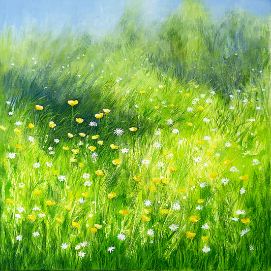'Buttercups and Daisies'- Mixed Media Original Painting - Beverley Perry Artist